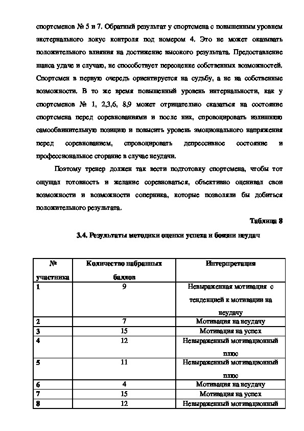 сделаны выводы о влиянии психологической готовности к соревнованиям.