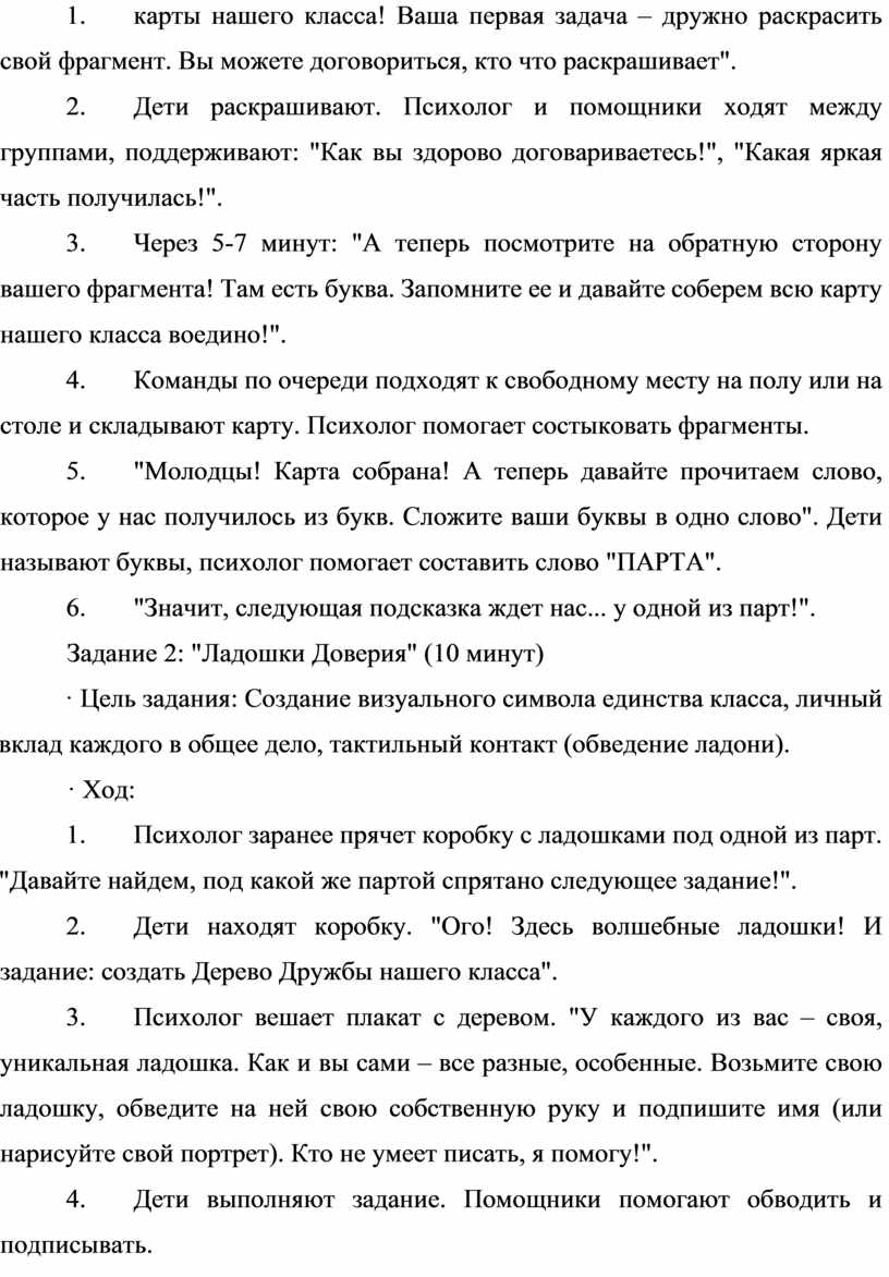 Подробный сценарий и инструкции для психолога