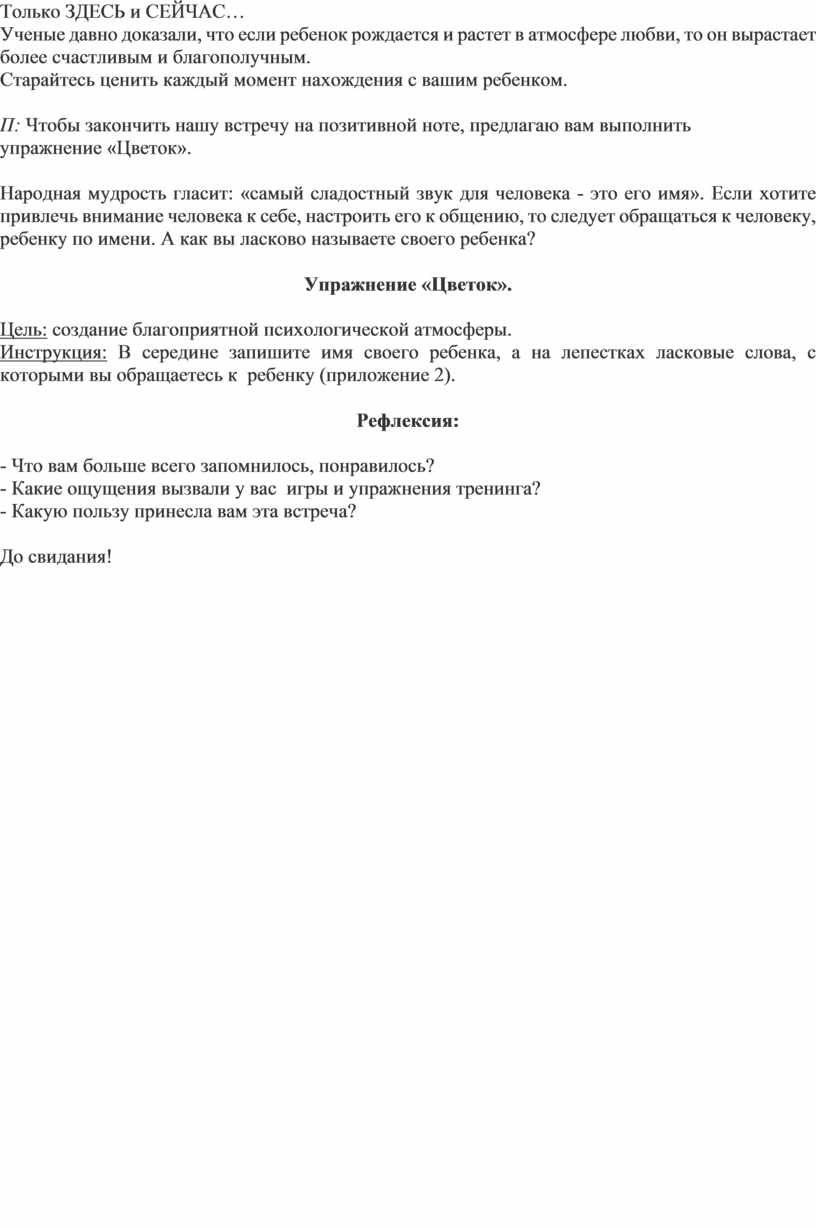 Инструкция: В середине запишите имя своего ребенка, а на лепестках ласковые слова, с которыми вы обращаетесь к ребенку (приложение 2).