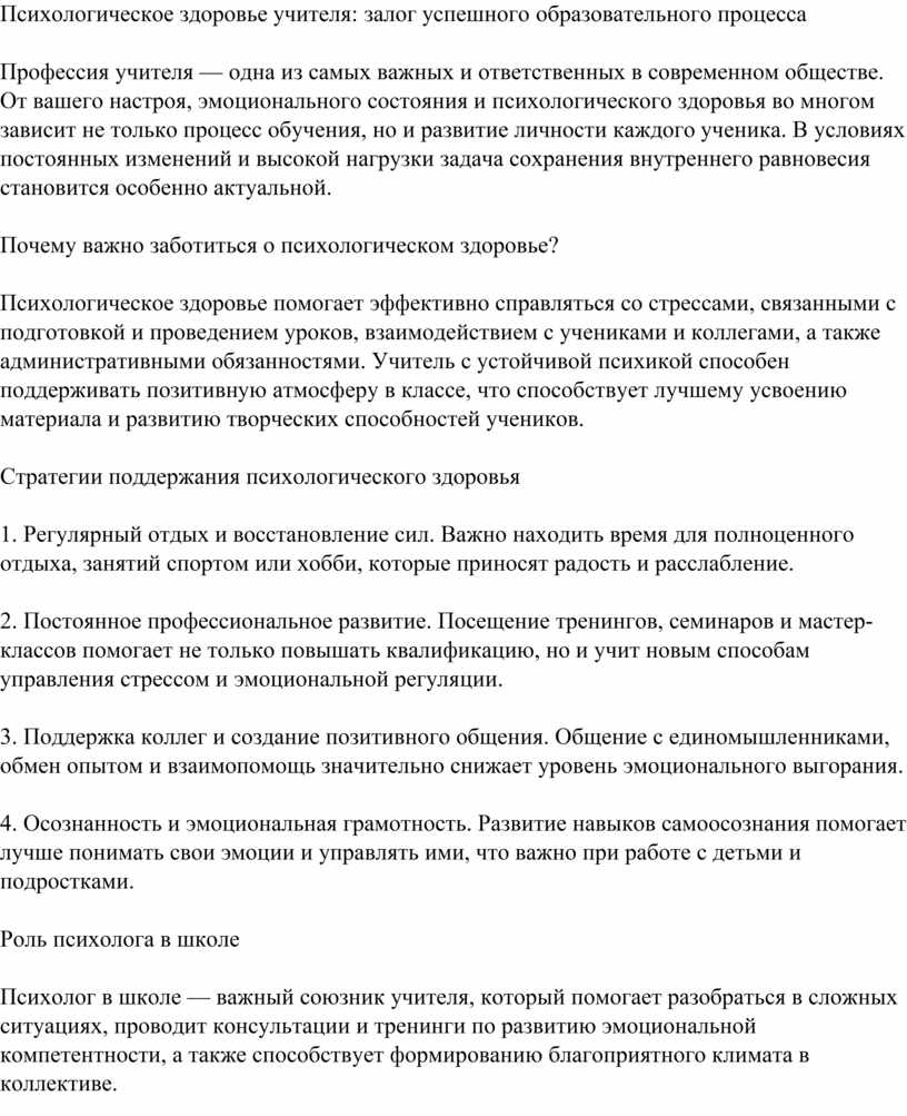 обязанностями. Учитель с устойчивой психикой способен поддерживать позитивную