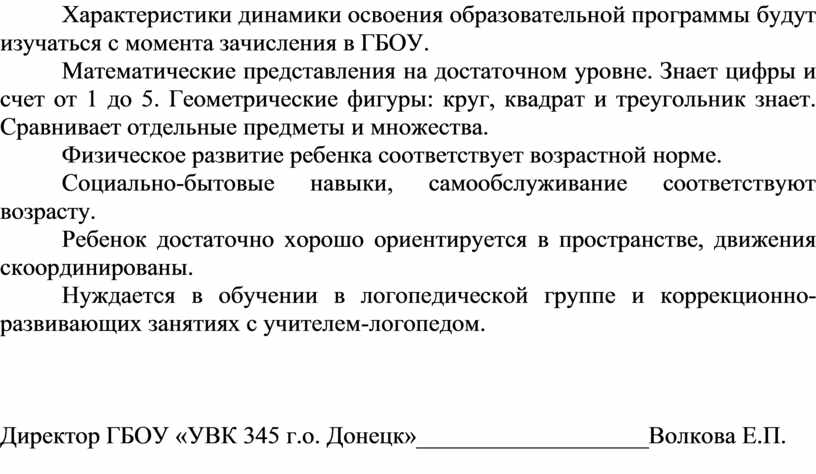 Характеристики динамики освоения образовательной программы будут изучаться с момента зачисления в ГБОУ.
