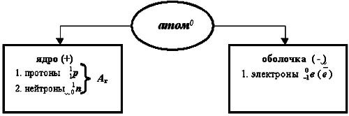 Таким образом, на сегодня известно точно, что... (учитель - на доске, ребята - в тетради составляют схему-таблицу строения атома).