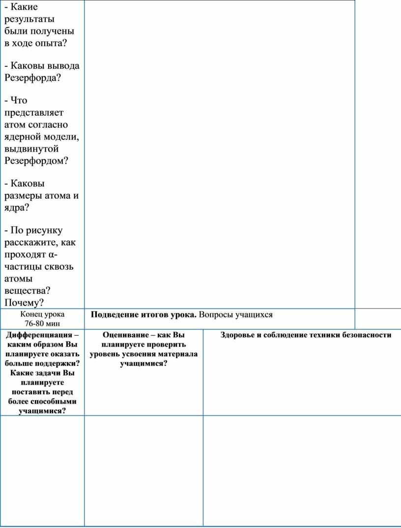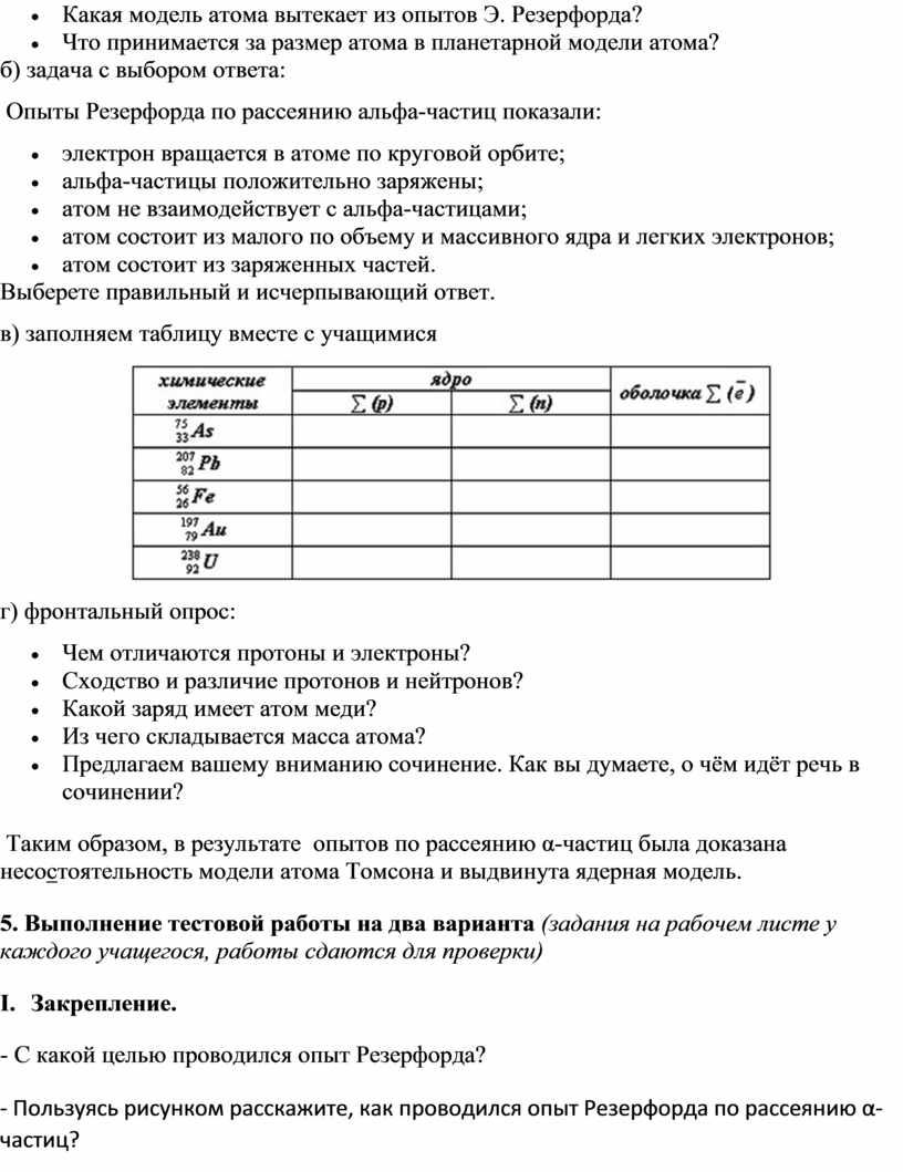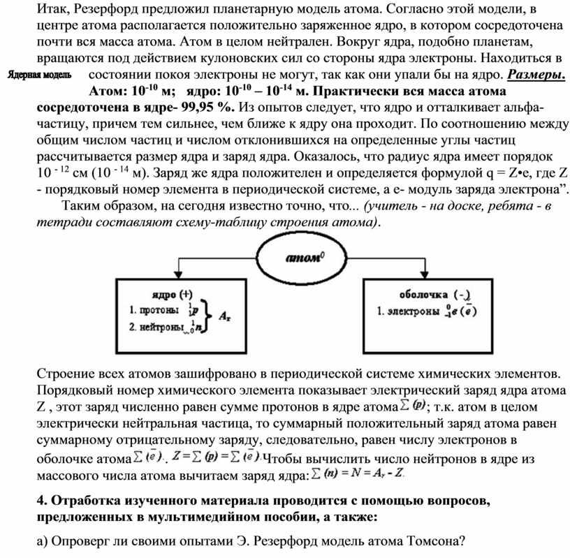 равен сумме протонов в ядре атома 4. Отработка изученного материала проводится с помощью вопросов, предложенных в мультимедийном пособии, а также: а) Опроверг ли своими опытами Э. Резерфорд модель атома Томсона?