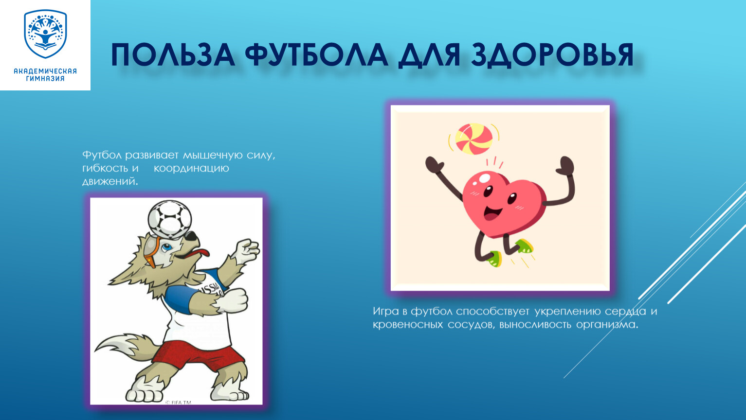 Игра в футбол способствует укреплению сердца и кровеносных сосудов, выносливость организма.
