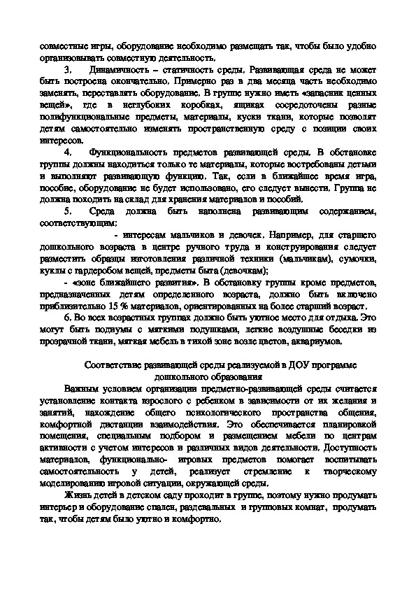 общие положения (требования) при создании развивающей среды в дошкольных