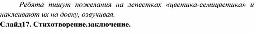 Ребята пишут пожелания на лепестках «цветика-семицветика» и наклеивают их на доску, озвучивая.