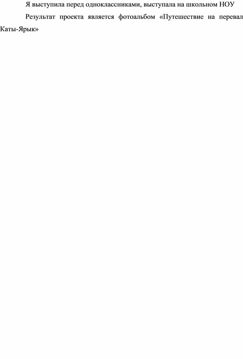 Результат проекта является фотоальбом «Путешествие на перевал Каты-Ярык»