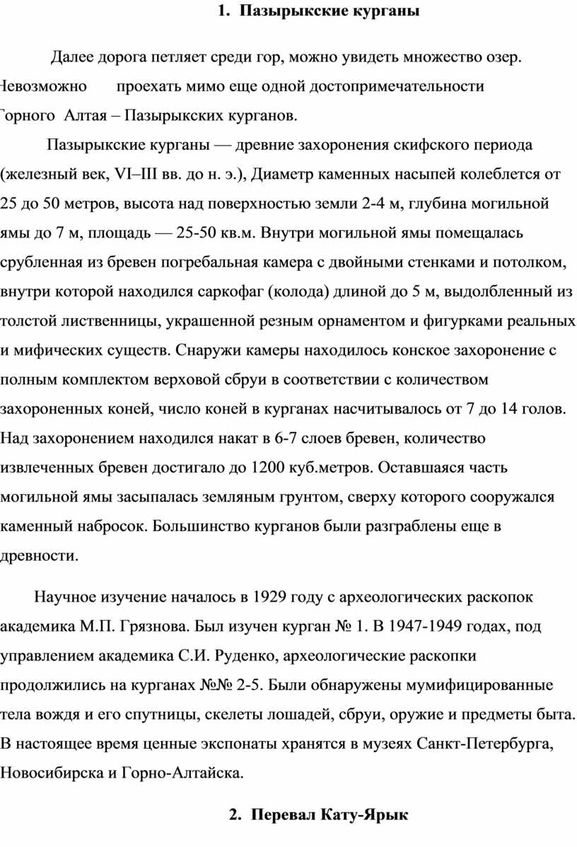 2. Составить описание достопримечательностей, по пути на Кату-Ярыкский перевал