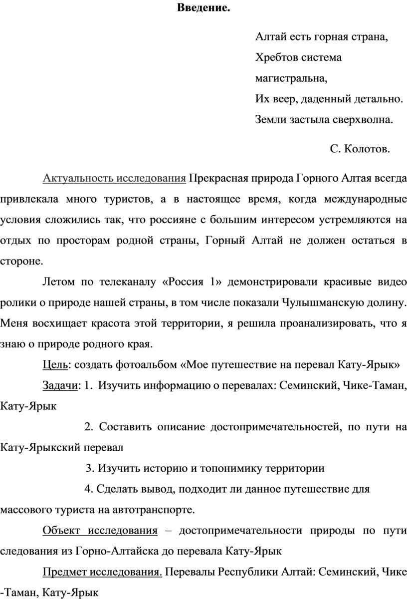 Цель: создать фотоальбом «Мое путешествие на перевал Кату-Ярык»