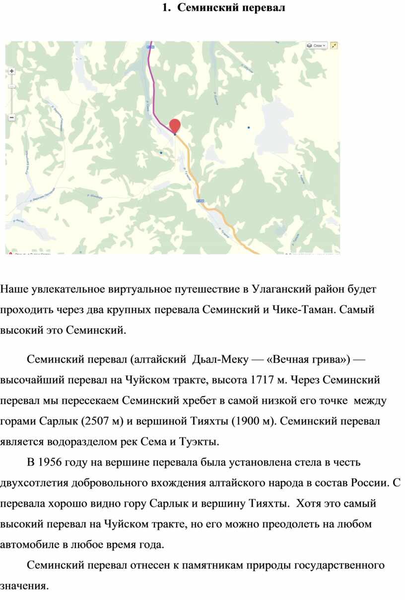 Задачи: 1. Изучить информацию о перевалах: Семинский, Чике-Таман, Кату-Ярык