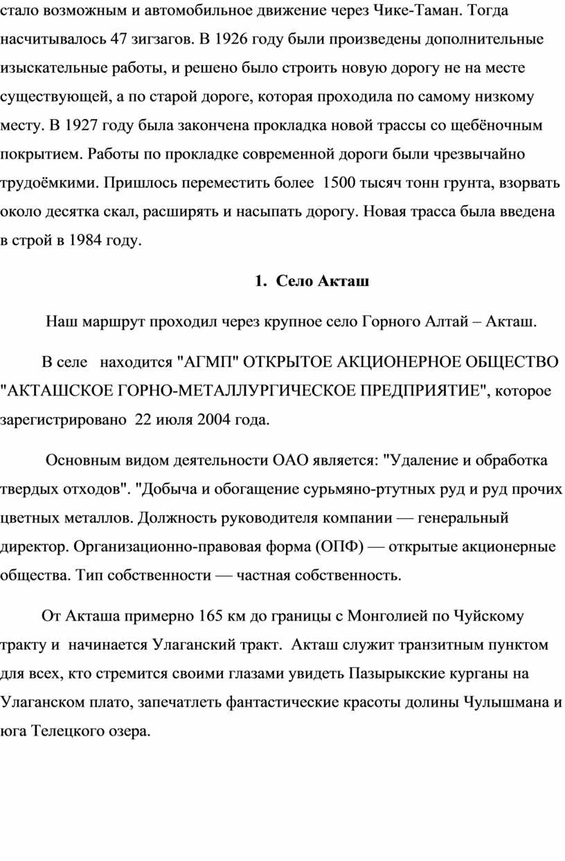 Наш маршрут проходил через крупное село Горного Алтай – Акташ.