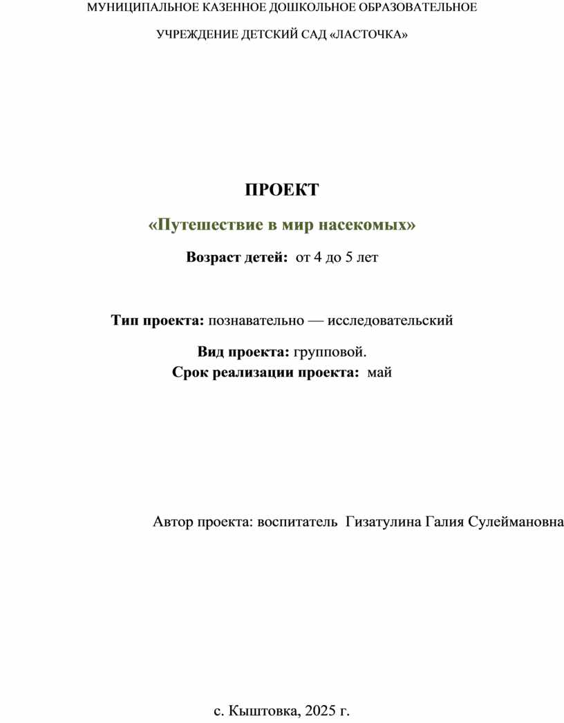 Автор проекта: воспитатель Гизатулина Галия Сулеймановна