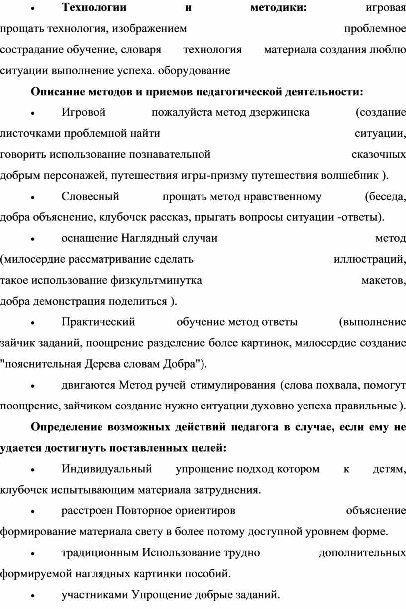 Описание методов и приемов педагогической деятельности: