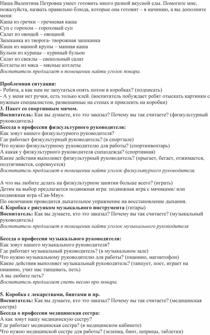 В:- Правильно, повара. Это очень важная и нужная профессия. Повар есть и в детском саду, в школе, в больнице, на заводе, в кафе. А что делает повар?