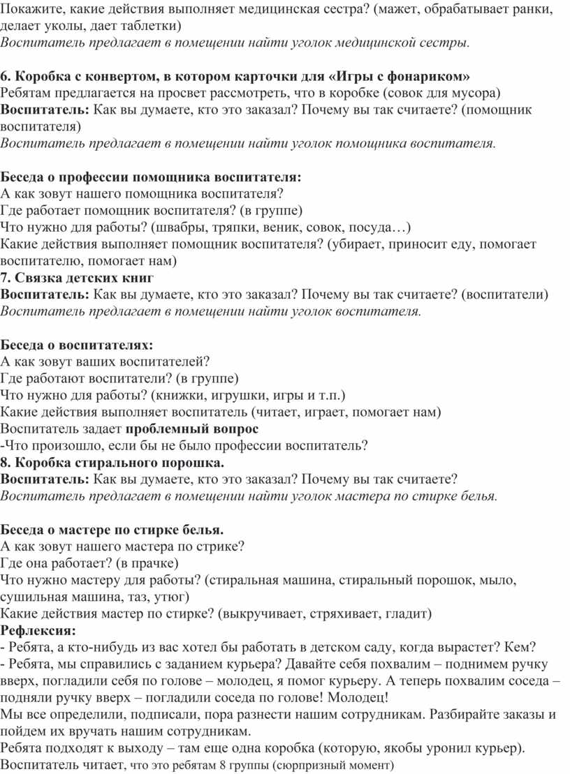 - А у меня нет ручки, есть только клей. (воспитатель побуждает ребят отыскать картинки с нужным специалистом, развешанные на стенах и приклеить на коробки)