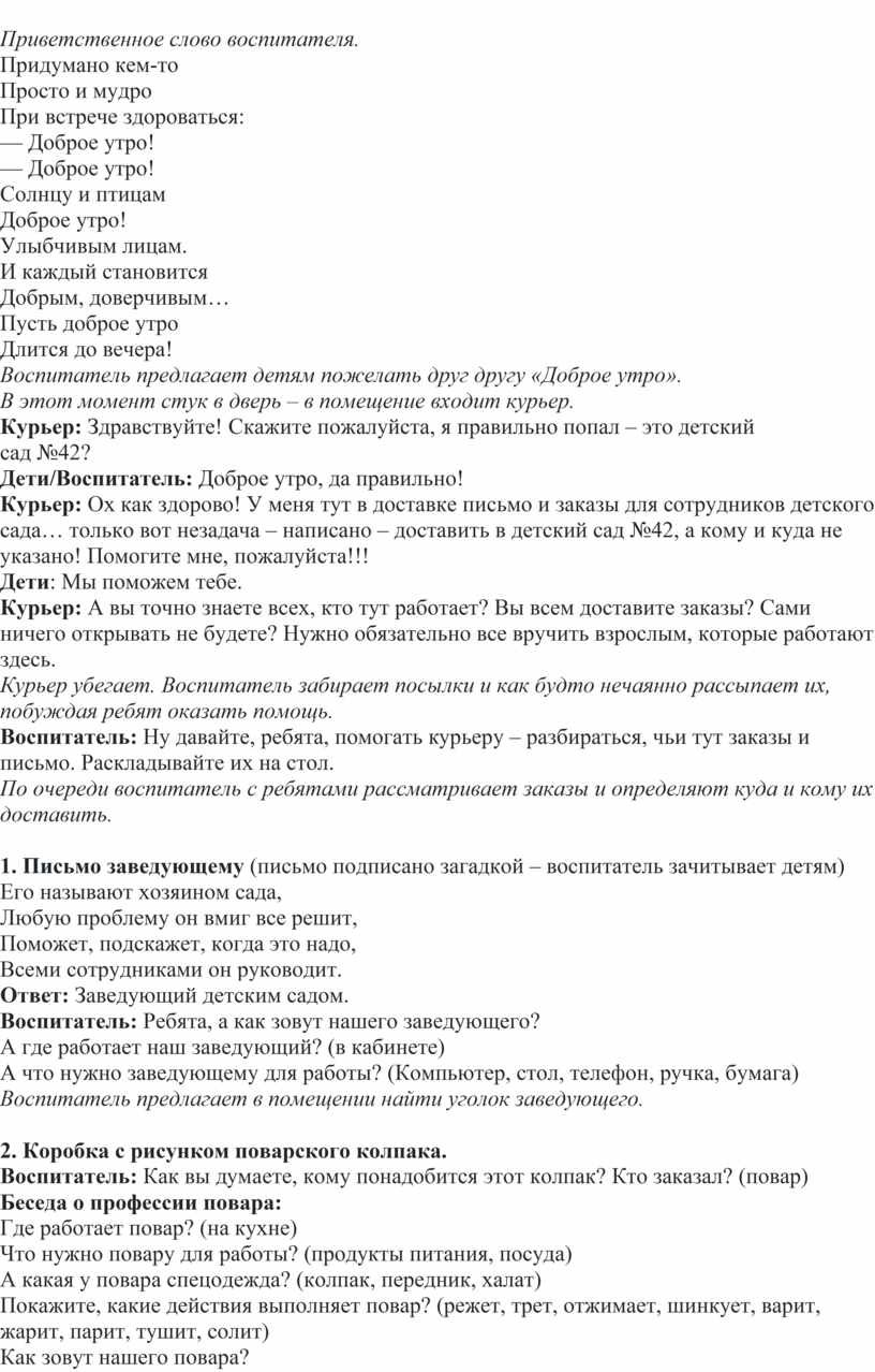 В:− Ребята, каждый день утром родители приводят вас в детский сад, а сами отправляются куда, как вы думаете?