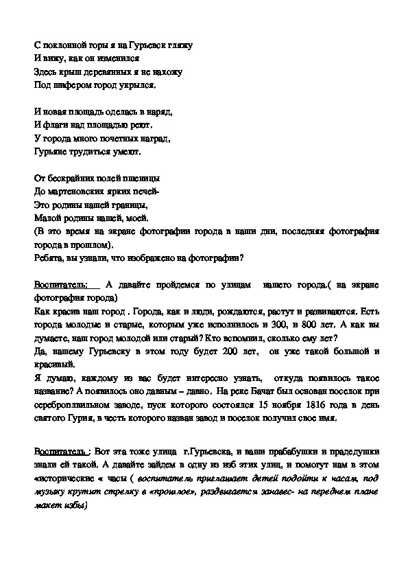 Воспитатель : Вот эта тоже улица г.Гурьевска, и ваши прабабушки и прадедушки