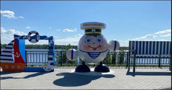 В прошлом году набережная особенно преобразилась. Издалека видна наша Ротонда. Ее подарили городу в 2021 году, когда проводили благоустройство краснокамской набережной. В самом ее центре и поставили ротонду. Теперь есть, откуда и на Каму полюбоваться, и сфотографироваться, и спрятаться от дождя. Рядом Мостик влюбленных. Набережная является самым популярным общественным пространством в летнее время. Здесь отличные игровые площадки, различные тренажеры, прогулочные зоны. Это главная достопримечательность, которую местные жители показывают гостям города.
