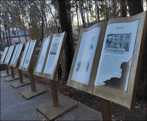 1-2. От автовокзала, перейдя дорогу, через сквер Бумажного комбината пройти к его проходной. Это первый объект Административное здание бумажного комбината.