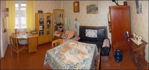 Здесь показан советский быт 1930-60-х годов». Раритетные вещи 1930-60-х годов, расскажут посетителям историю обычной советской коммуналки. В шкафу для одежды хранятся платья, рубашки, галстуки, в буфете — хрусталь и фарфор, на обувной полке — ботики и калоши. Воркует старый радиоприемник, «гостиную» освещает уютный торшер. А на кухне живет самый настоящий примус! Создается ощущение, что вы совершили путешествие во времени.
