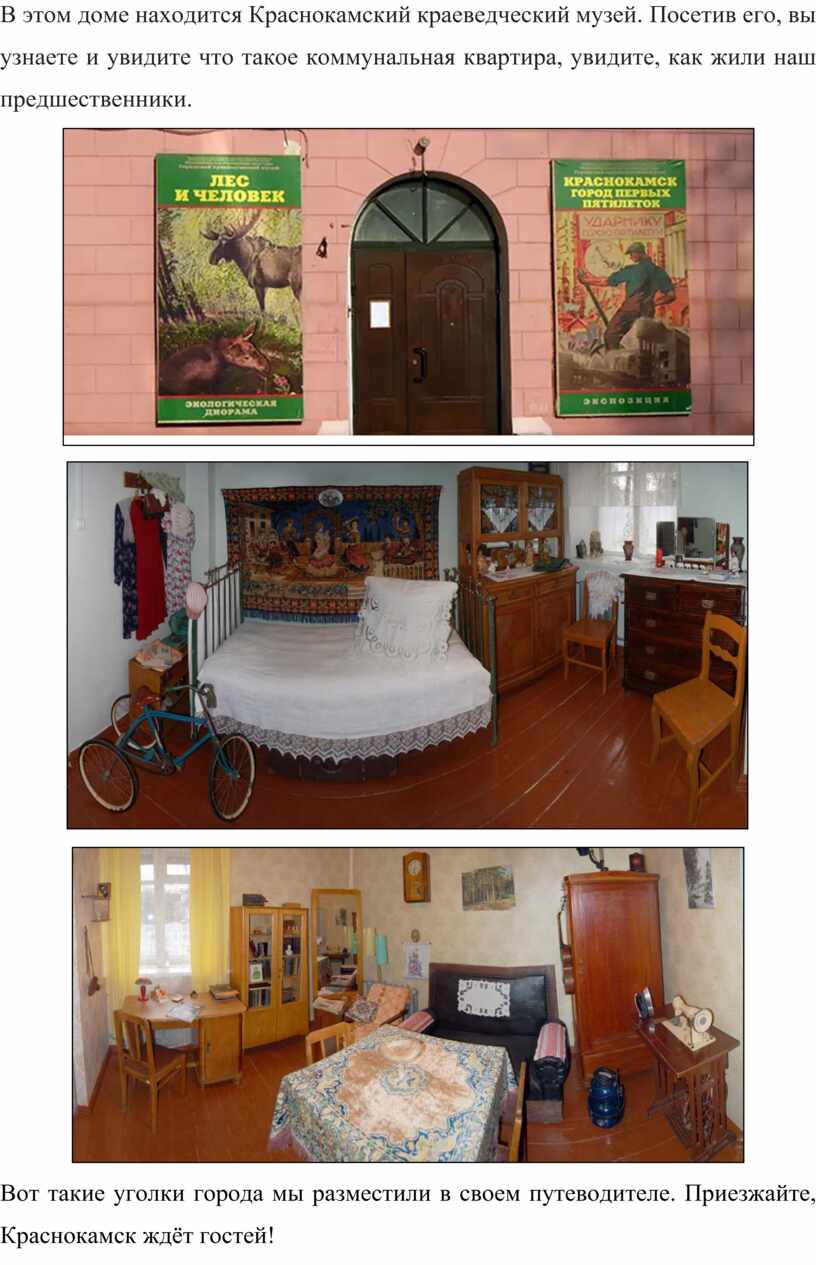 Любовь к городу начинается с музея. Он хранит прошлое, преобразует настоящее, заставляет с ответственностью задуматься о будущем. Подробности на сайте http://krasnokamskmuseum.ru/.