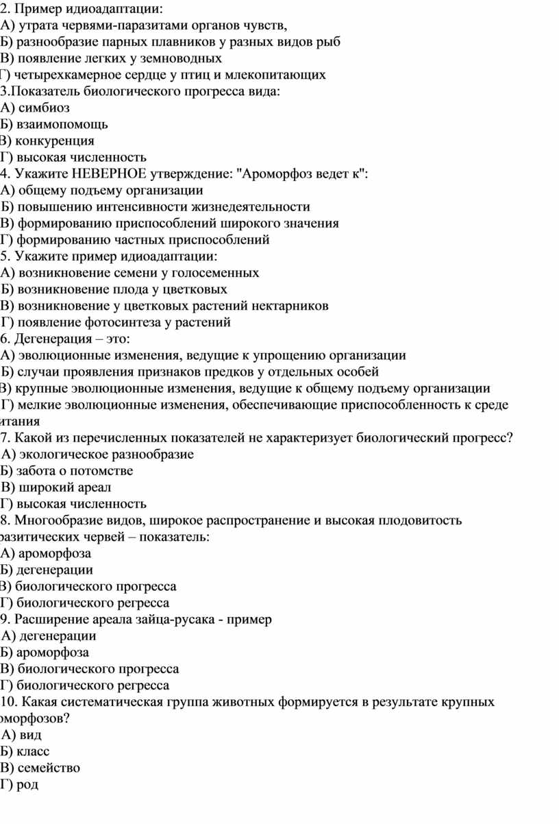 Г) биологического прогресса