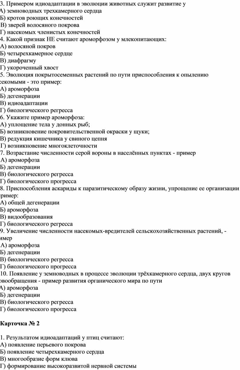 2. Появление у древних млекопитающих четырёхкамерного сердца, теплокровности, развитой коры головного мозга – пример: