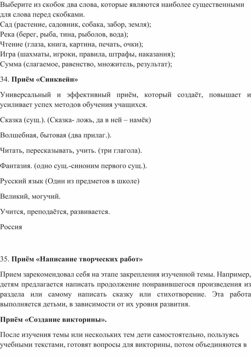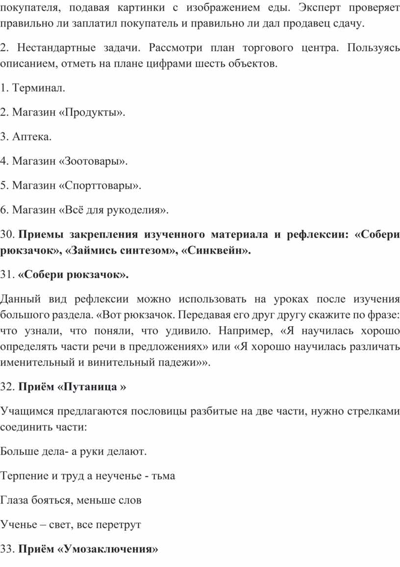 30. Приемы закрепления изученного материала и рефлексии: «Собери рюкзачок», «Займись синтезом», «Синквейн».
