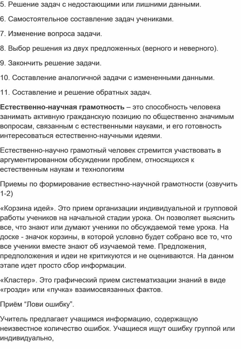 Приемы по формирование ествестнно-научной грамотности (озвучить 1-2)