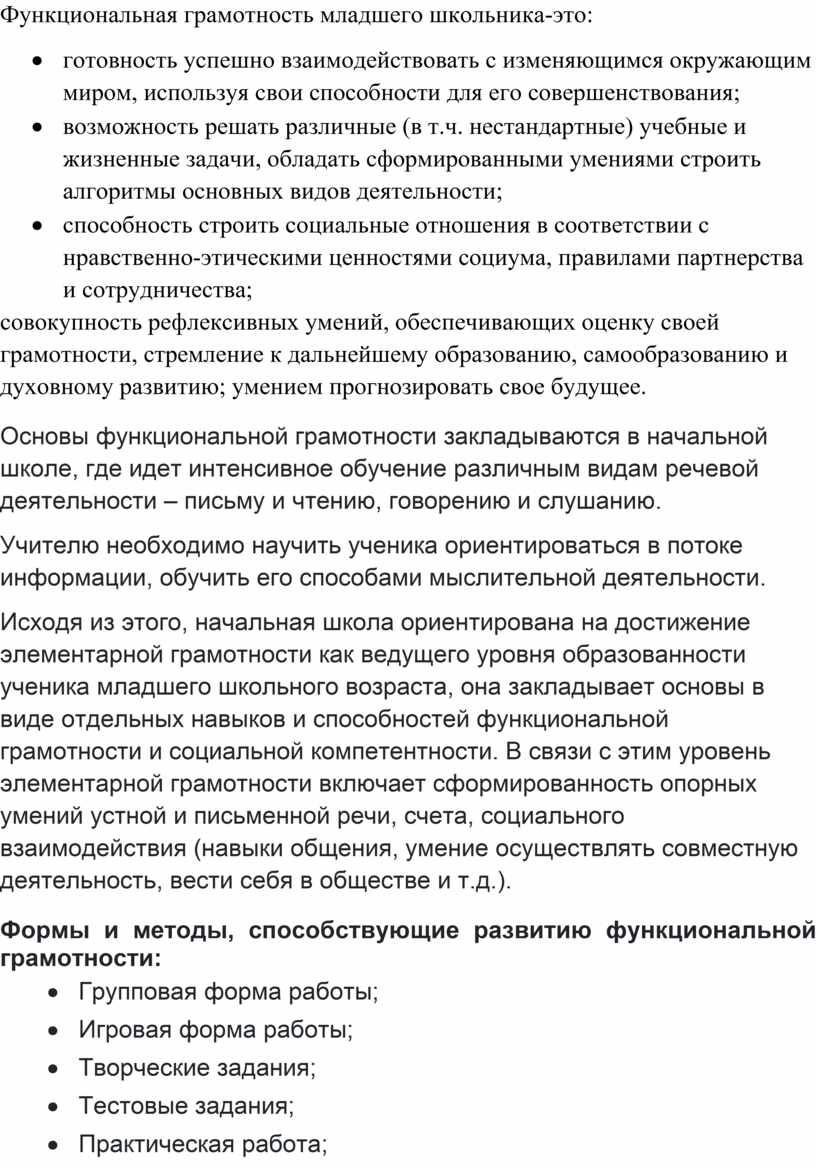 Основы функциональной грамотности закладываются в начальной школе, где идет интенсивное обучение различным видам речевой деятельности – письму и чтению, говорению и слушанию.