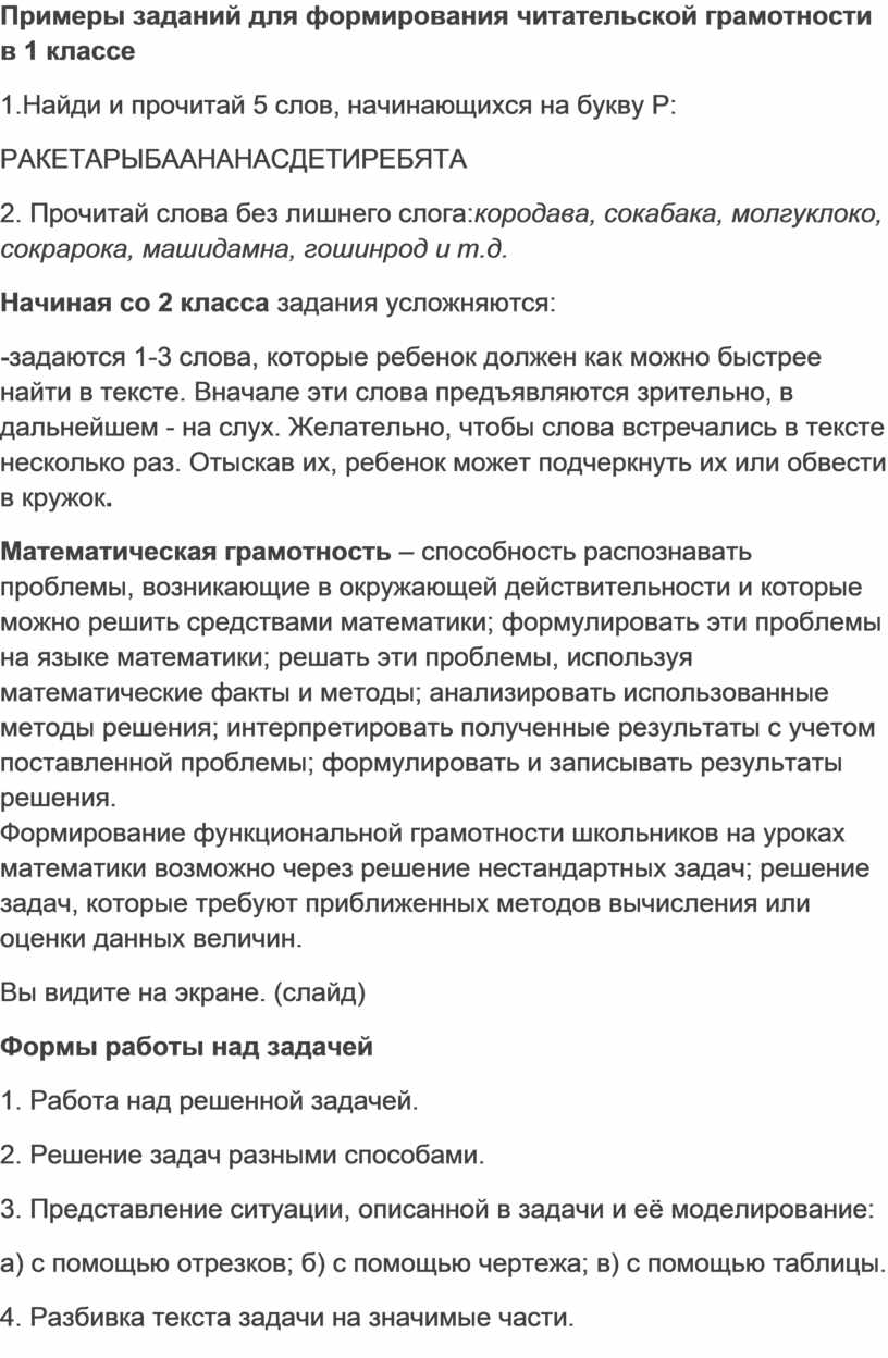 Примеры заданий для формирования читательской грамотности в 1 классе