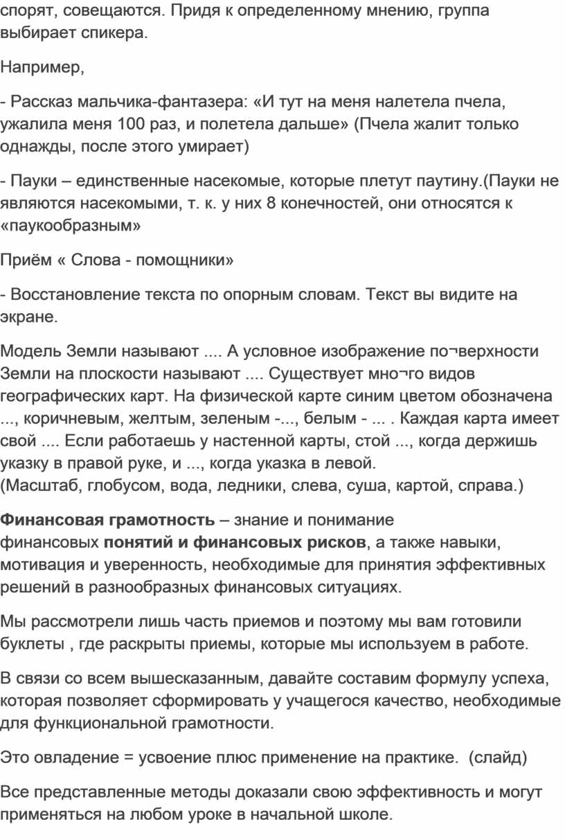 Рассмотрим некоторые приёмы по формированию функциональной грамотности: