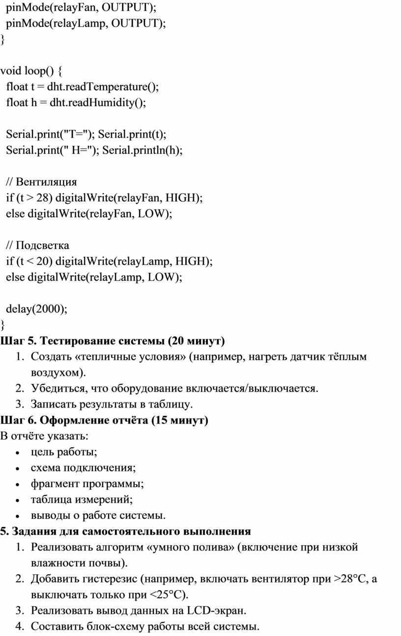 1. Реализовать алгоритм «умного полива» (включение при низкой влажности почвы).