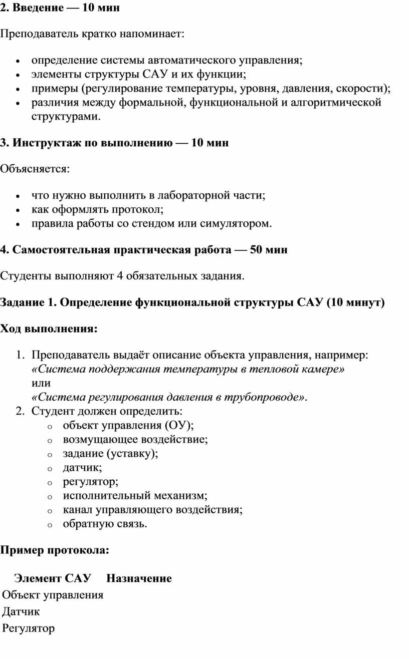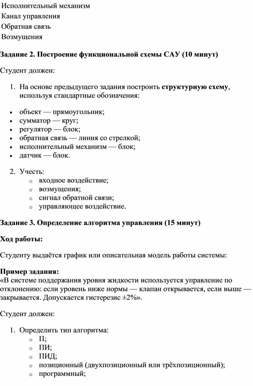 Задание 1. Определение функциональной структуры САУ (10 минут)