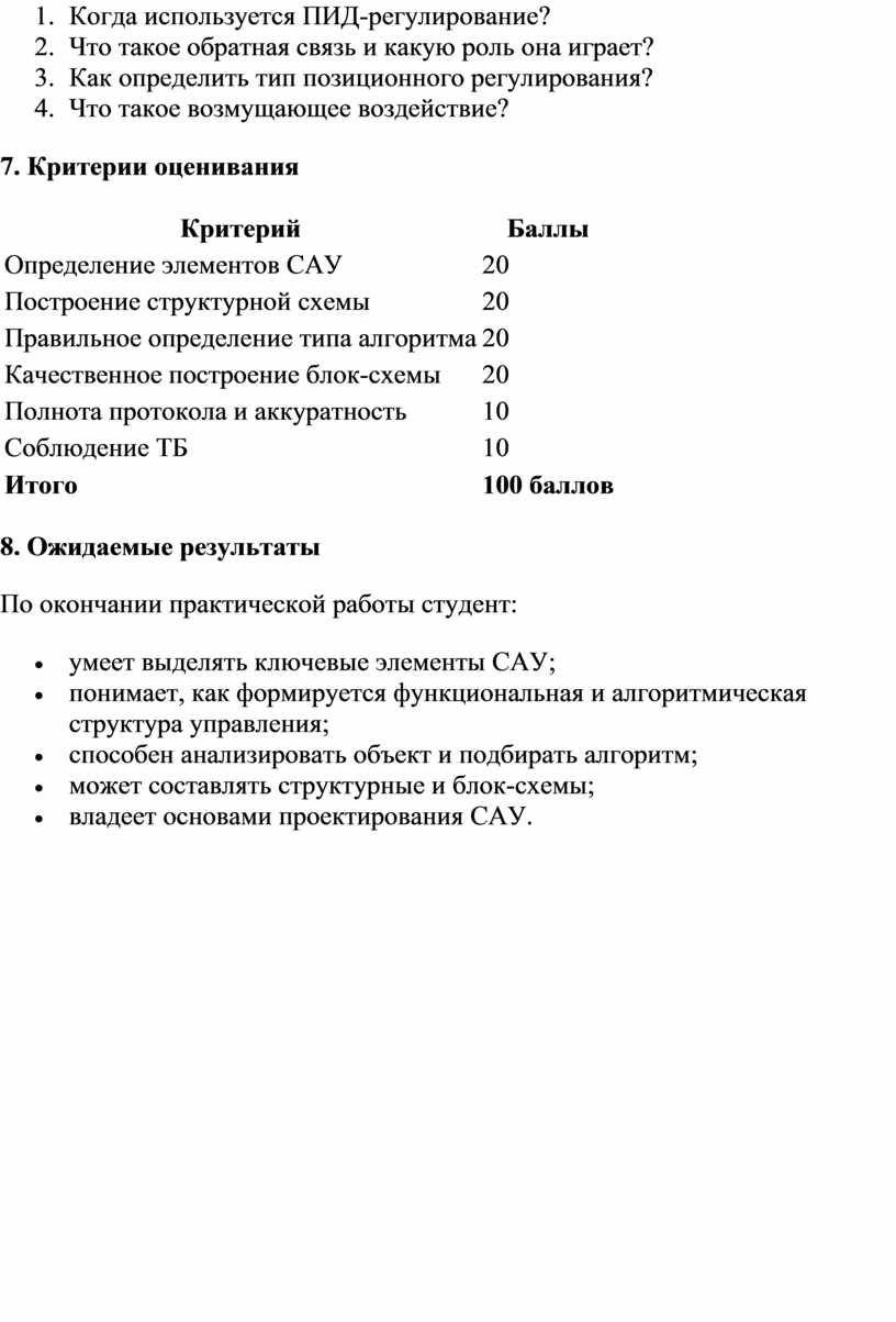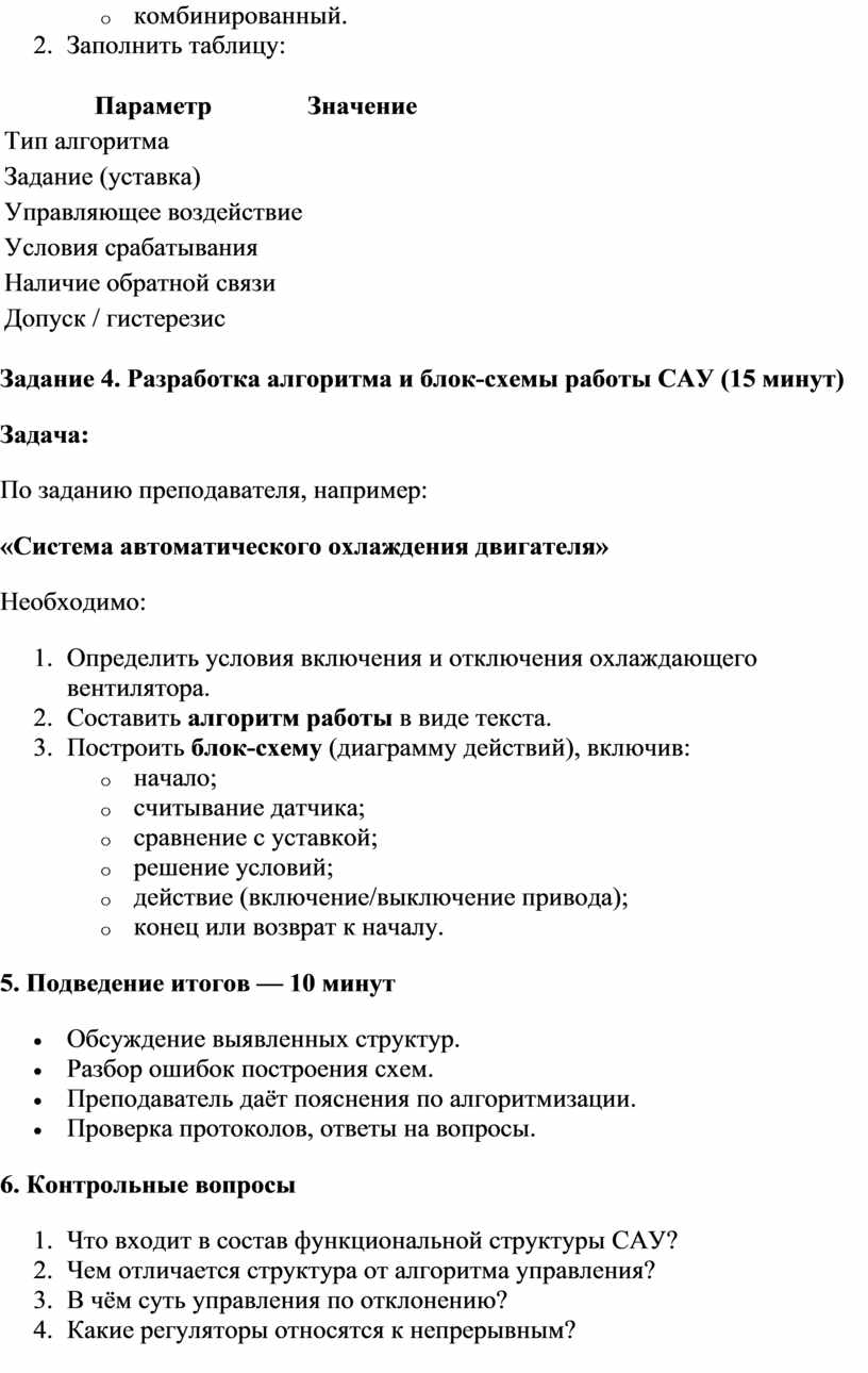 Задание 4. Разработка алгоритма и блок-схемы работы САУ (15 минут)