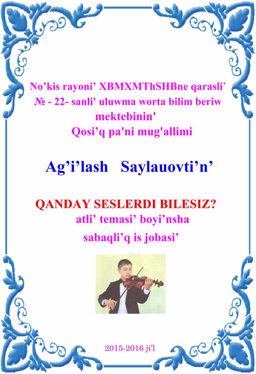 Woqi’wshi’larga sesler haqqi’nda uluwma tusinikler beriw ha’m bul temani’n’ basqa temalardan wo’zgesheligin ayti’p wo’tip temani’ baslaw.