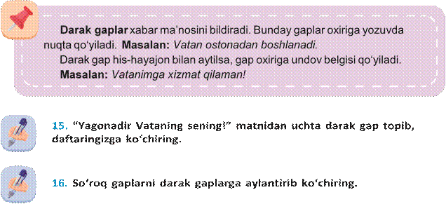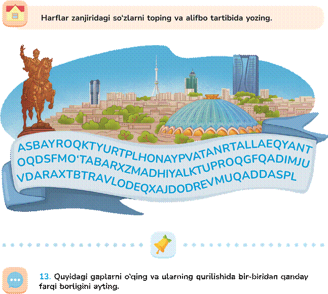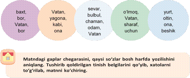 matnining birinchi gapini o‘qing va topshiriqlarni bajaring.