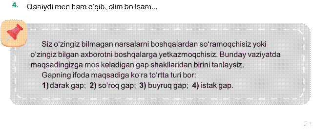 3. Nima uchun muallif aynan yuqoridagi jumladan foydalanganini tushuntiring.