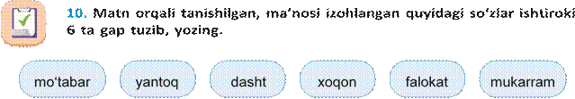 izohlari bilan moslab ko‘chiring. Ustozingiz yordamida ularning qaysilari