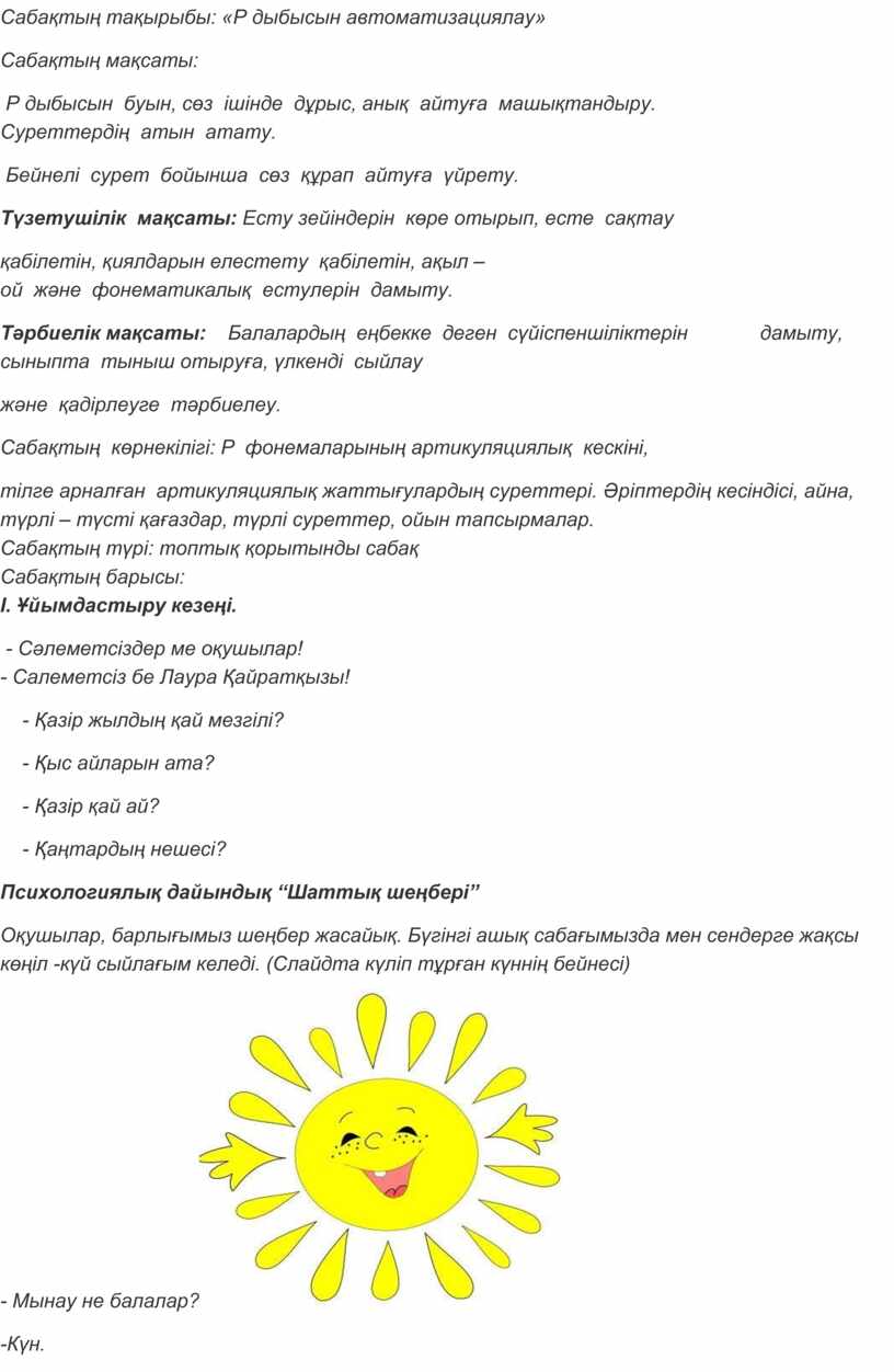 Сабақтың тақырыбы: «Р дыбысын автоматизациялау»