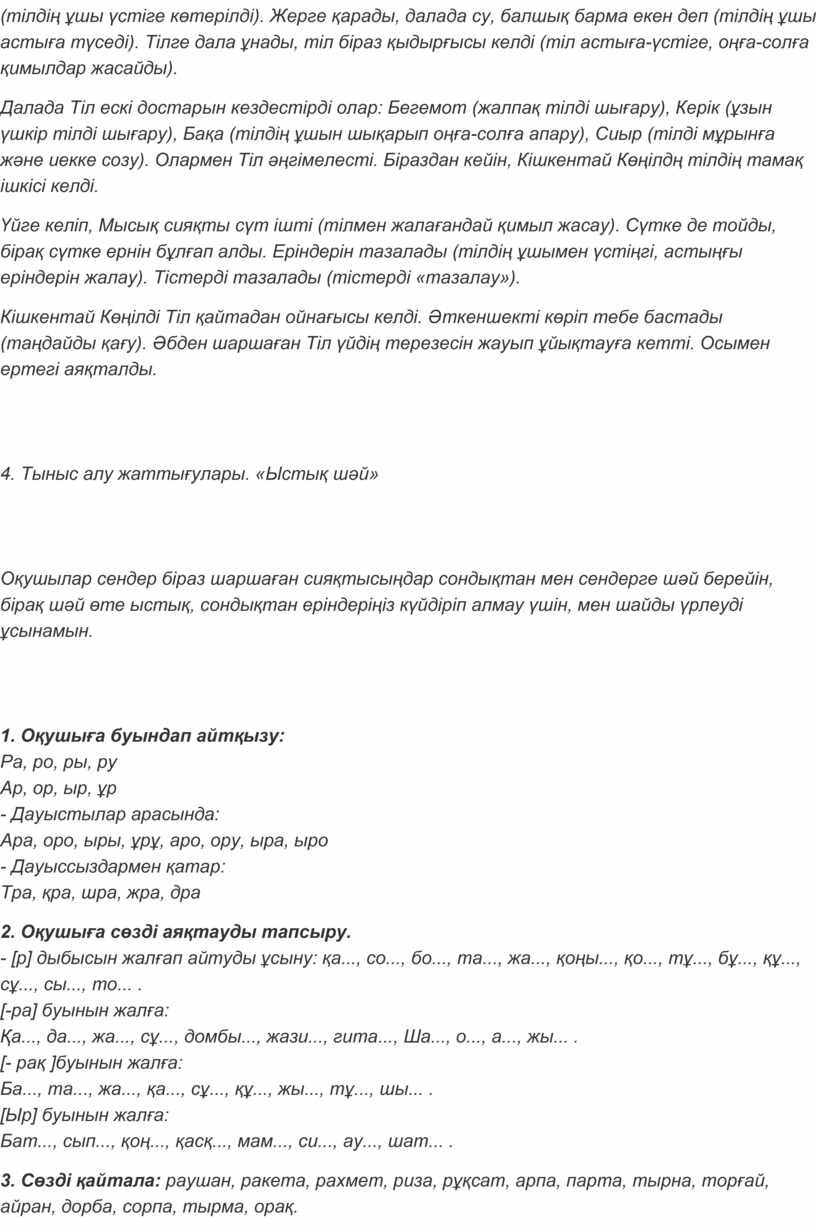 орындау кажет. Ол үшін біз, Р дыбысының артикуляциясын есімізге