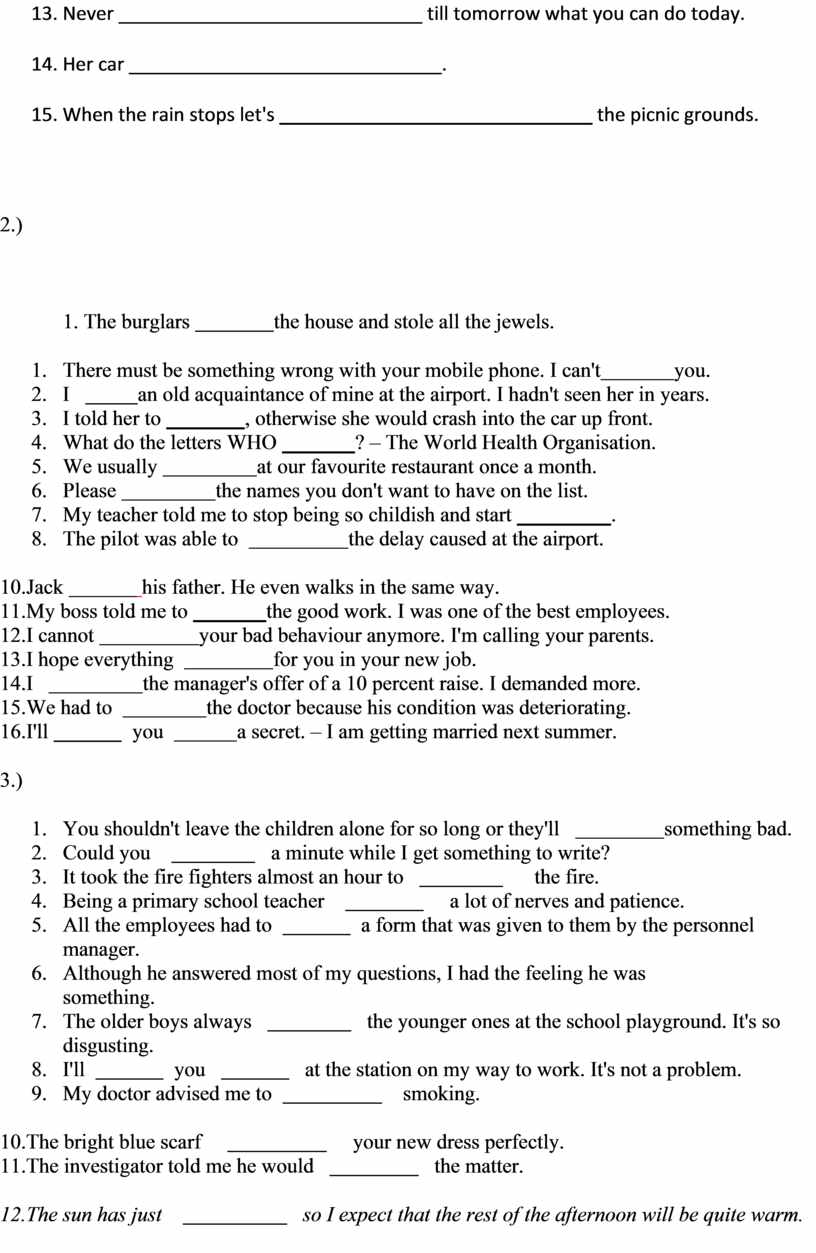 15. When the rain stops let's ______________________________ the picnic grounds.