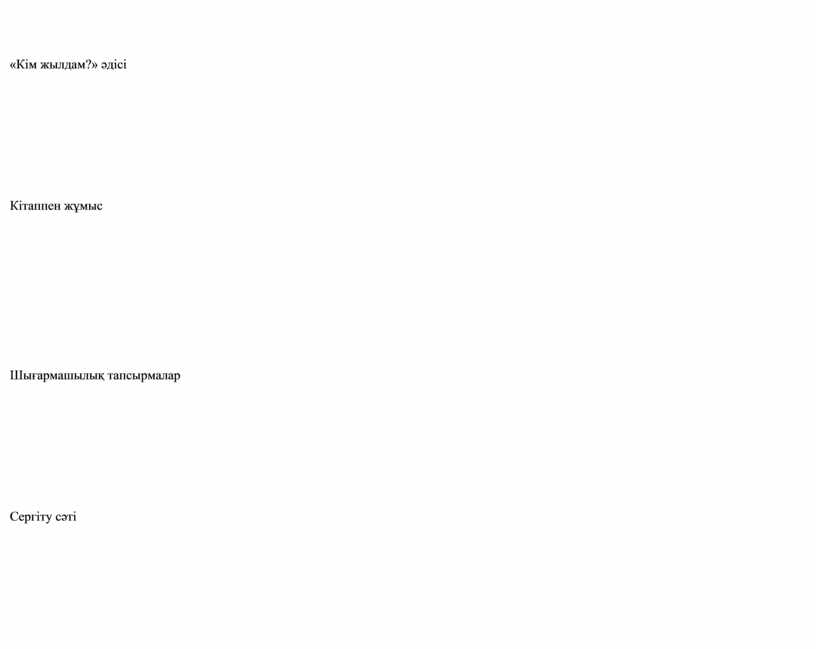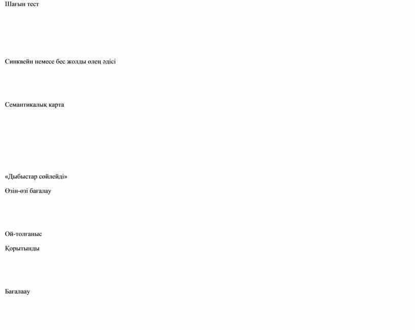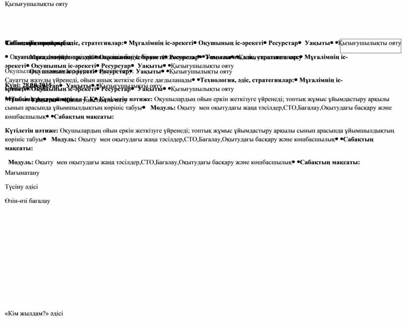 Күтілетін нәтиже: Оқушылардың ойын еркін жеткізуге үйренеді; топтық жұмыс ұйымдастыру арқылы сынып арасында ұйымшылдықтың көрініс табуы |