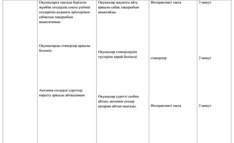 Оқушыларға антоним сөздер беріледі, артынан оқушы жауаптарынан кейін дұрыс-бұрыстығын анықтау үшін оқушыларға жауаптары шығады