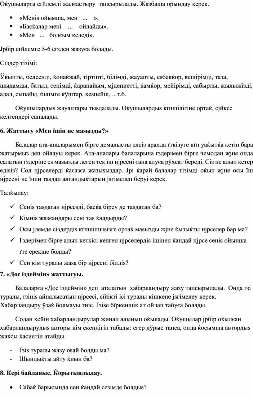 5. «Мен кіммін? Мен ќандаймын?» жаттыєуы.