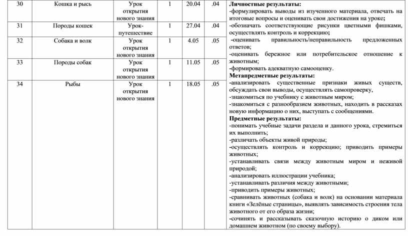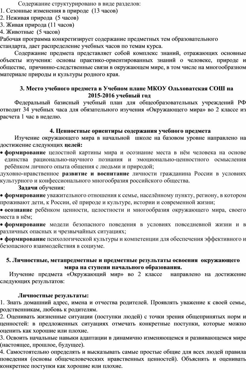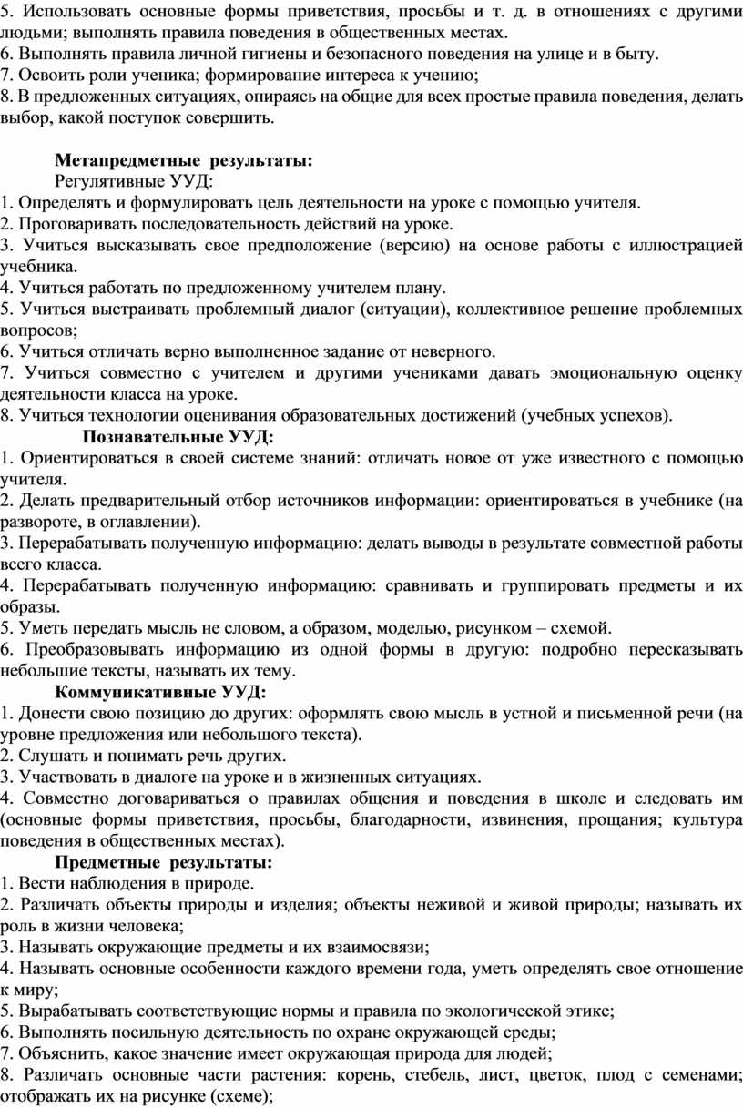 5. Личностные, предметные и метапредметные результаты освоения окружающего мира