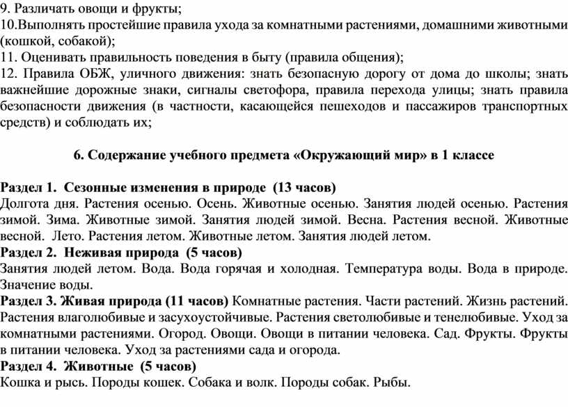 Содержание предмета представляет собой комплекс знаний, отражающих основные объекты изучения: основы практико-ориентированных знаний о человеке, природе и обществе, причинно-следственные связи в окружающем мире, в том числе на многообразном материале природы и культуры родного края.