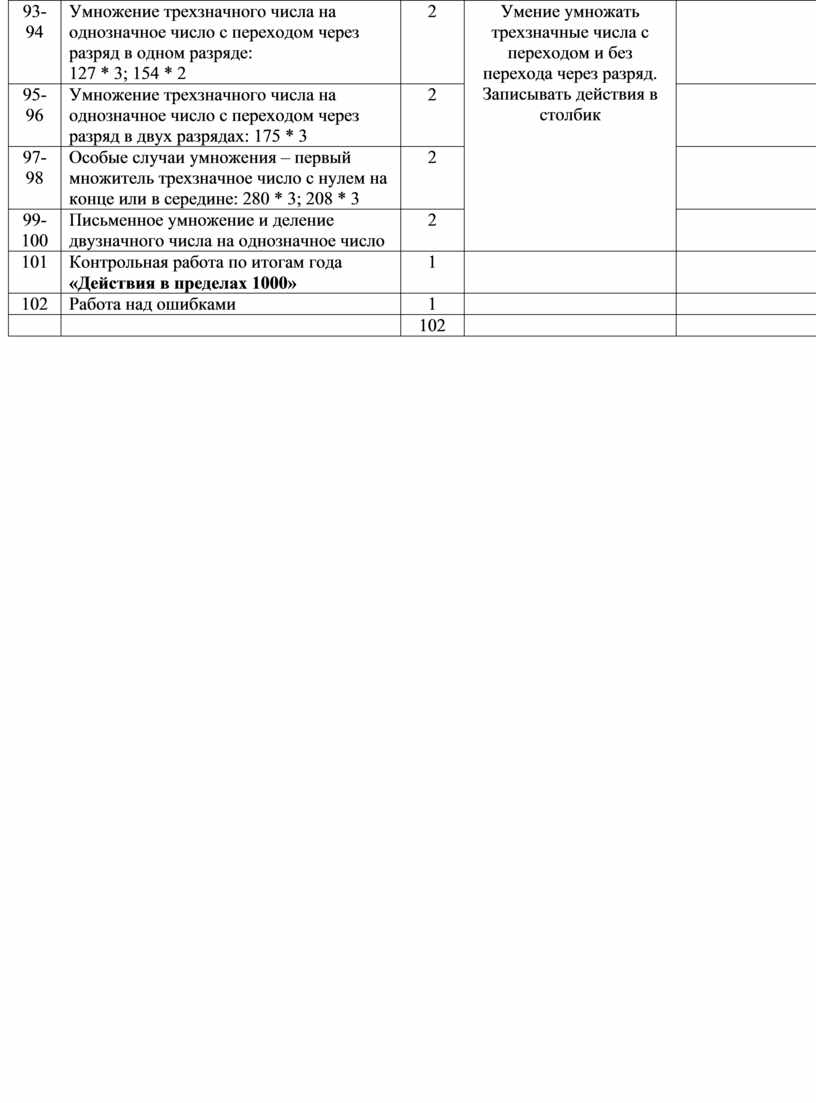 · выполнять умножение числа 100, деление на 10, 100 без остатка и с остатком;