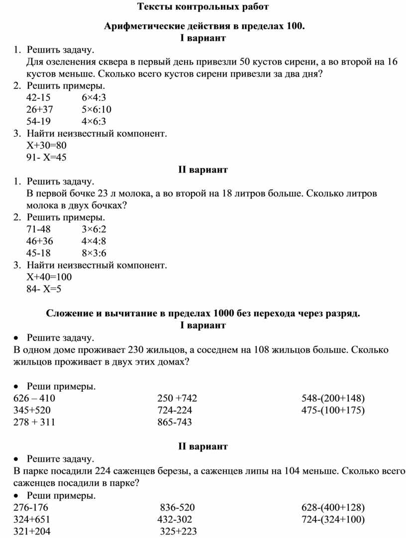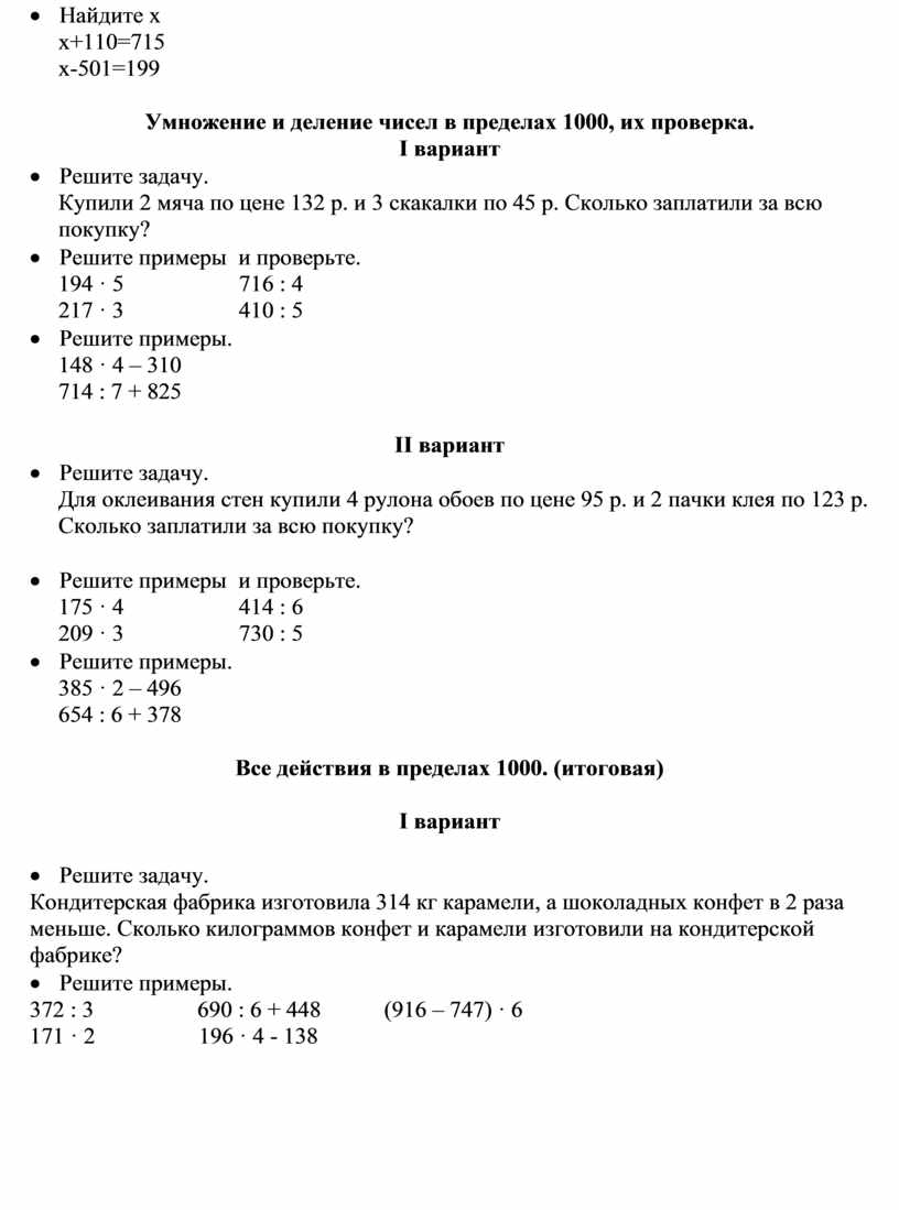 Все действия в пределах 1000. (итоговая)