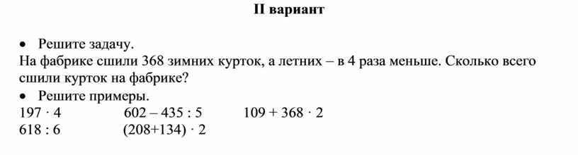 На фабрике сшили 368 зимних курток, а летних – в 4 раза меньше. Сколько всего сшили курток на фабрике?